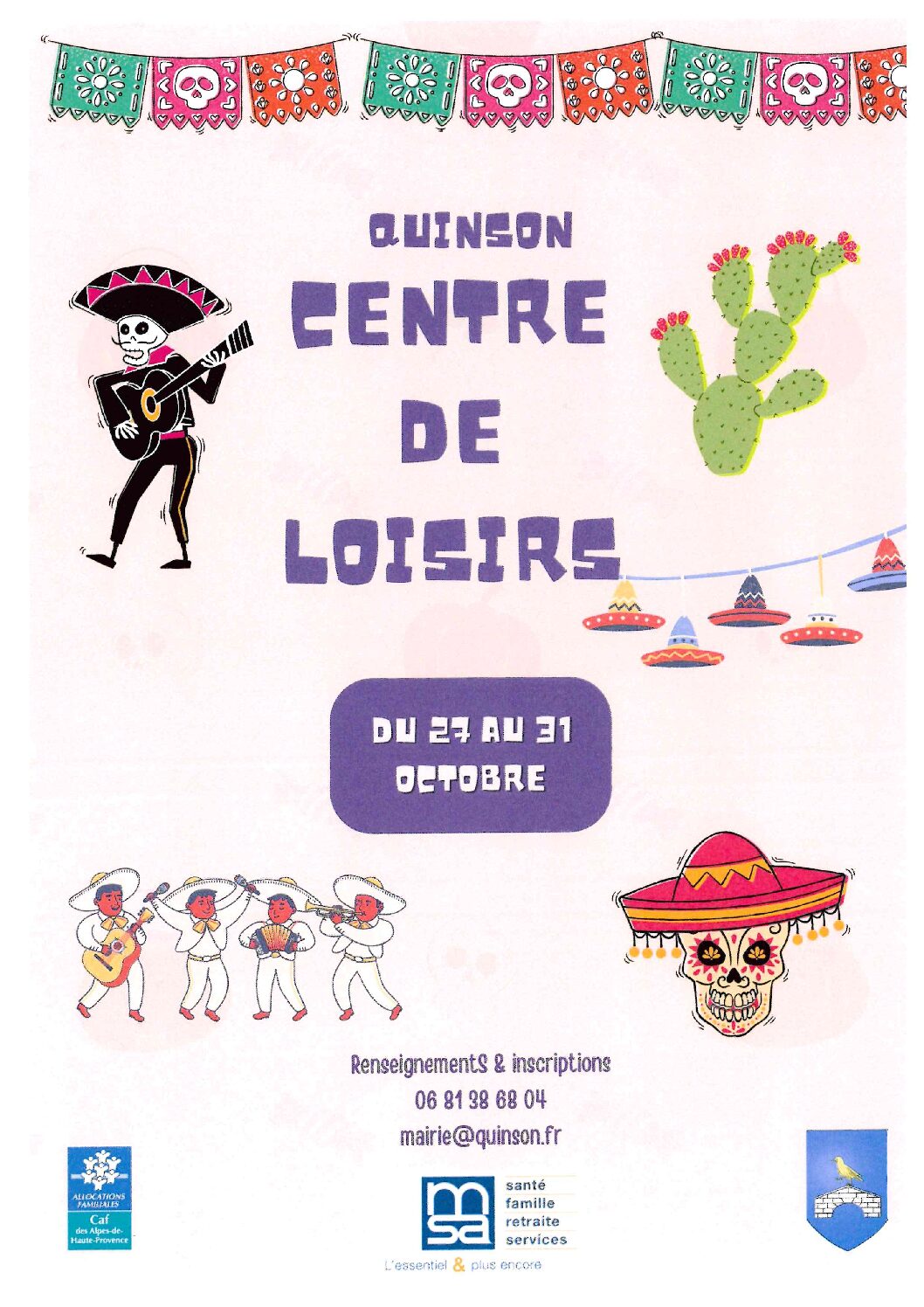 Bonjour ! Voici le programme des activités des Vacances d'Automne 2025 au centre de loisirs de Quinson ! Le centre de loisirs est fermé pour départ en séjour Le [...]
