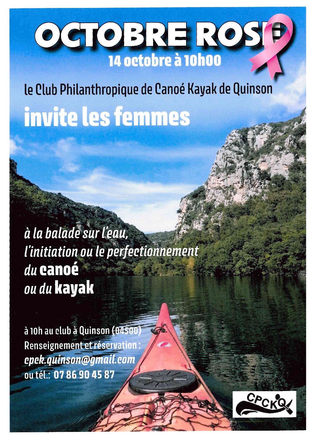 Dans le cadre d'Octobre Rose, le Club Philanthropique de Canoé Kayak de Quinson invite les femmes pour une balade sur l'eau, s'initier ou se perfectionner [...]