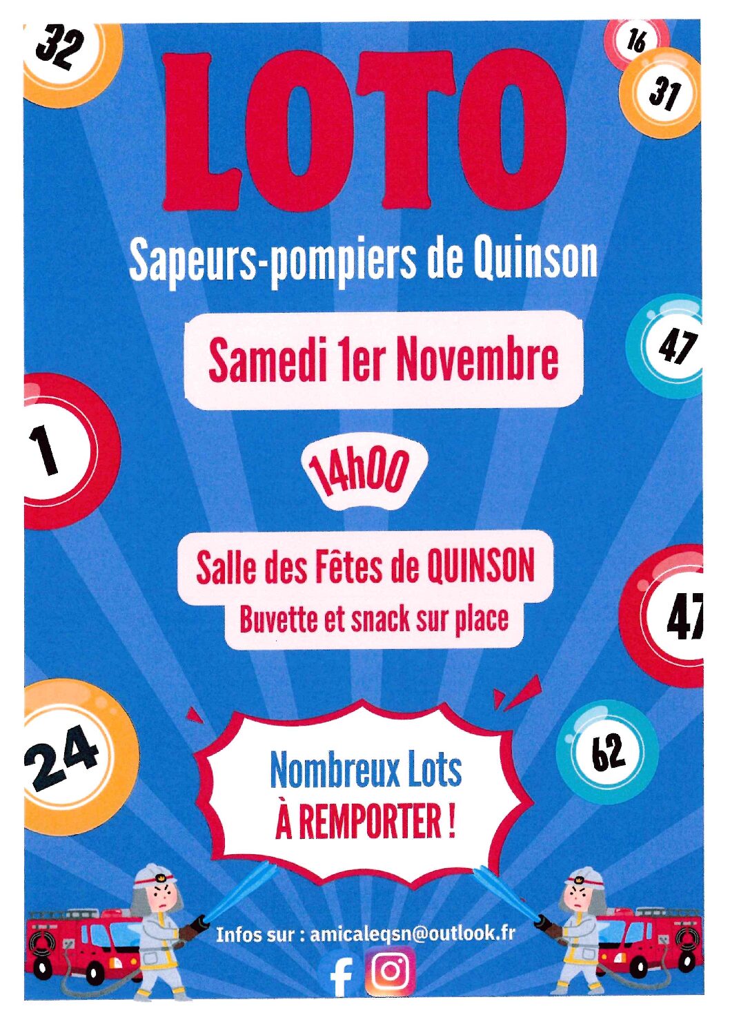 Samedi 1er novembre à 14h00 Salle des fêtes de Quinson Venez passer un bon moment en famille ou entre amis, soutenir vos pompiers et tenter [...]