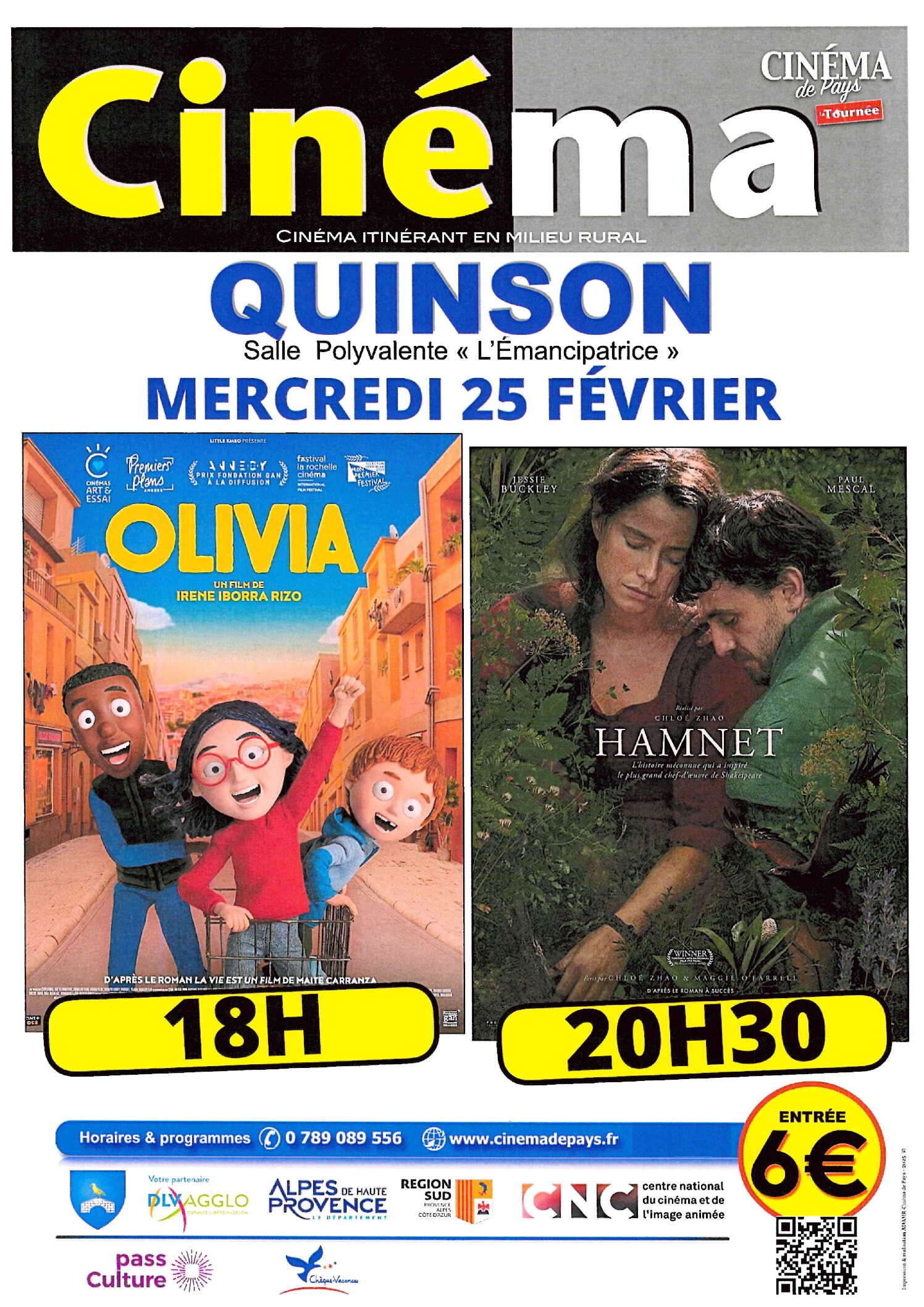 2 séances de cinéma vous sont proposées le mercredi 25 février , à partir de 18h00, à la salle l'Emancipatrice. -18h00 " OLIVIA" - 20h30 [...]