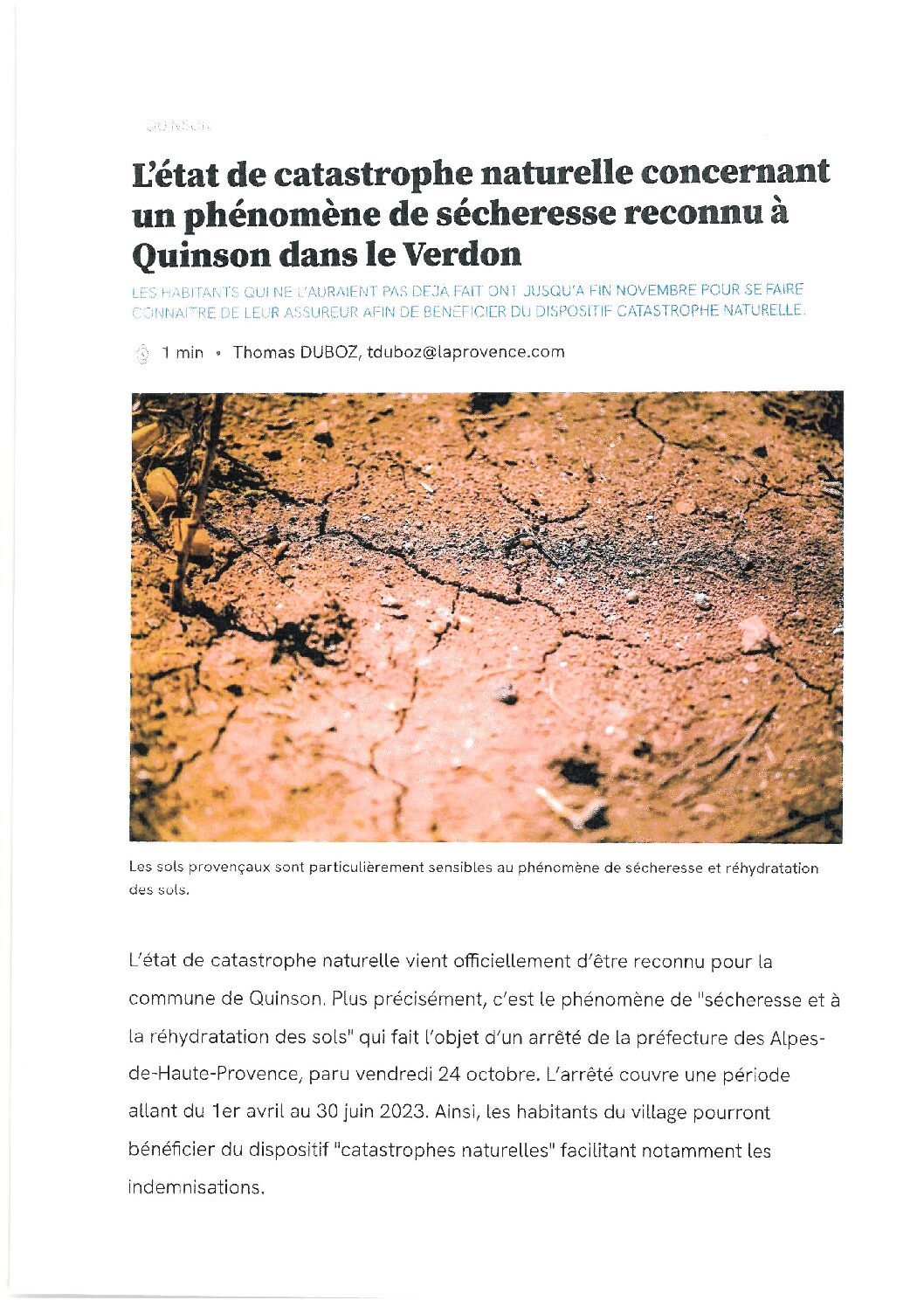 SECHERESSE DU 1 ER AVRIL AU 30 JUIN 2023 INONDATIONS ET COULEE DE BOUE LE 14 AOUT 2025 L’état de catastrophe naturelle est reconnu pour [...]