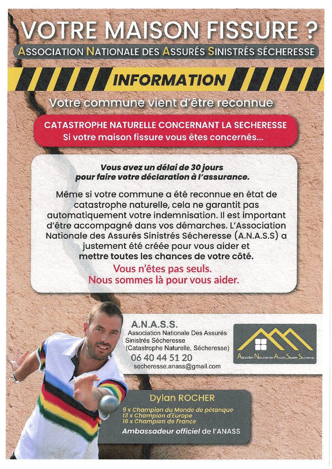 Pour les administrés concernés par les maisons qui fissurent: Si vous n'avez pas effectué la déclaration dans le délai de 30 jours, vous avez la [...]