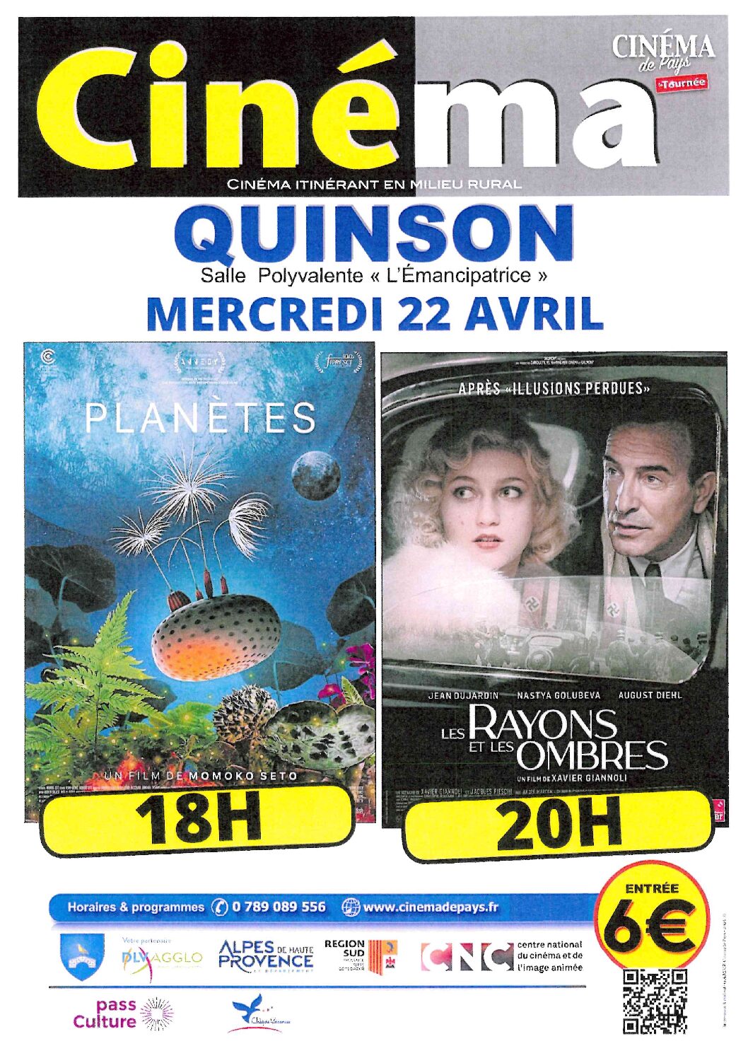 Cinéma de pays Séance du mercredi 22 avril salle l’Émancipatrice à QUINSON